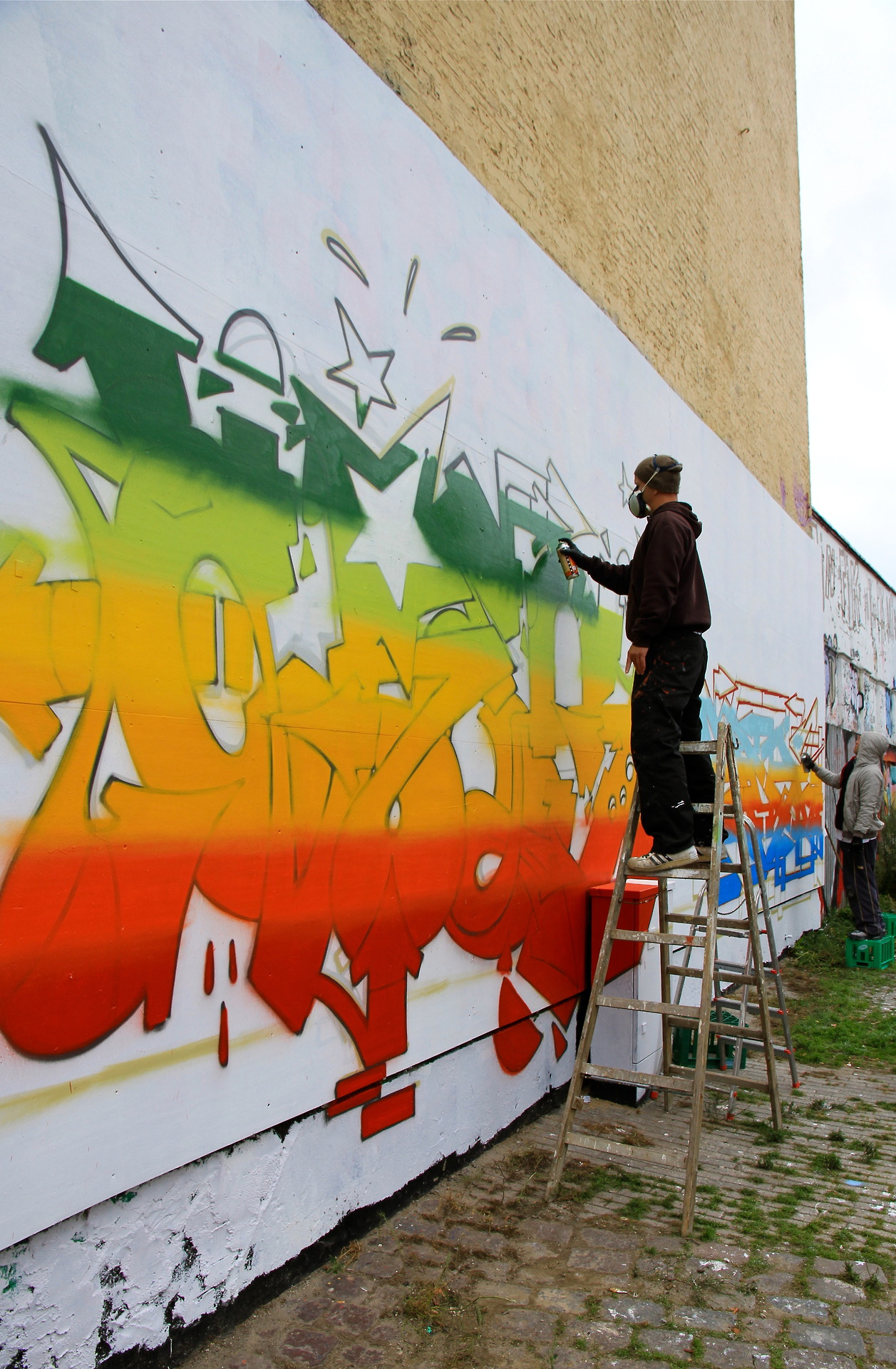 Cres1 (Whap Gang) and Sabe (RIS, FYS, COD) has been out in the streets of Copenhagen to paint a new wall and here’s some shots of the completed “Free Your Spirit” piece. Photographs found over at © Henrik Haven’s page.  (Photo © Henrik Haven)
