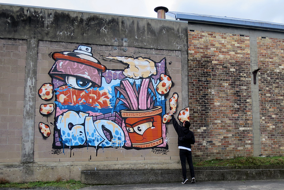 Can you remember the first piece you did? Yeah it was on the train tracks near my school, but I painted the back of the barrier that was facing nothing except the one or two people that would walk their dogs down that path occasionally. I thought It was a good idea at the time.