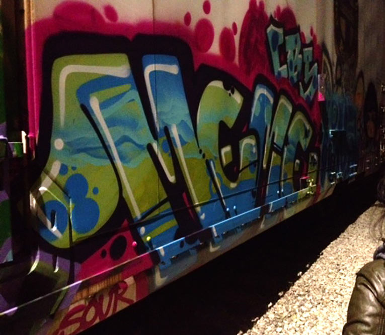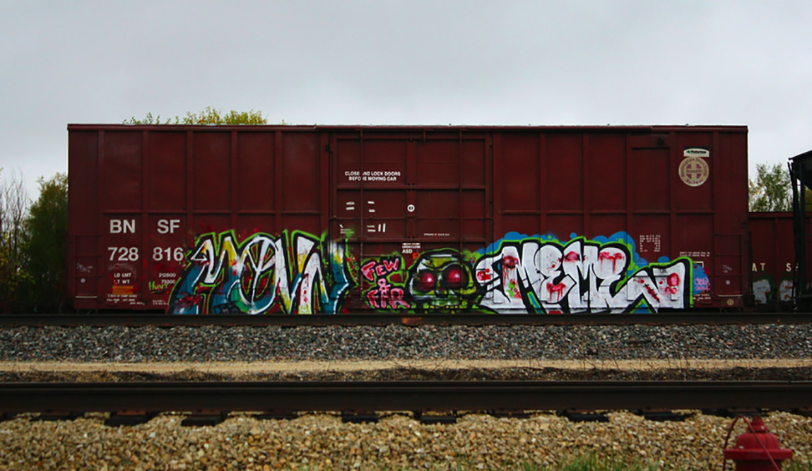 I started tagging on stuff around the age of 16. Skateboarding was something I did more because of my surroundings. Due to the fact that I didn’t grow up in a city, I was pretty much sheltered from all graffiti. A five years later I laid eyes on a freight train and it blew my mind!! I’ve never wanted to stop tagging/painting again after that.