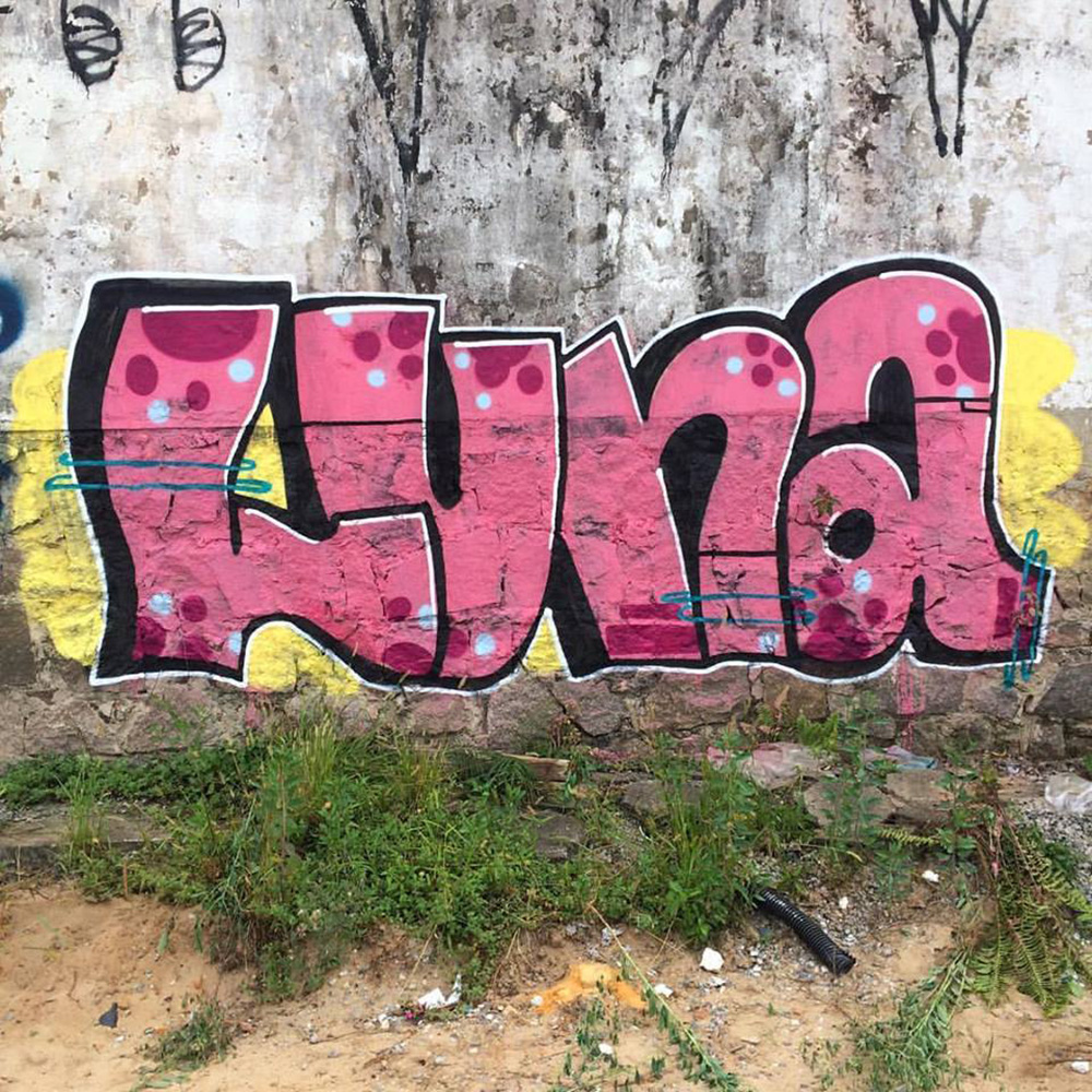 I live in a beach town, small and a bit violent. The social contrast is absurd because there are a lot of people that live in mangroves (stilt houses,) or illegal occupation of areas on hills, slums, and many people on the streets. I believe there are many good artists hidden in these places they are inhibited to express themselves artistically, since they spend most of their time looking for a way to survive. The graffiti scene here is very slow: you might want to paint a wall or a door for months that no one will do. There are a few graffiti artists, but the guys do it very well!