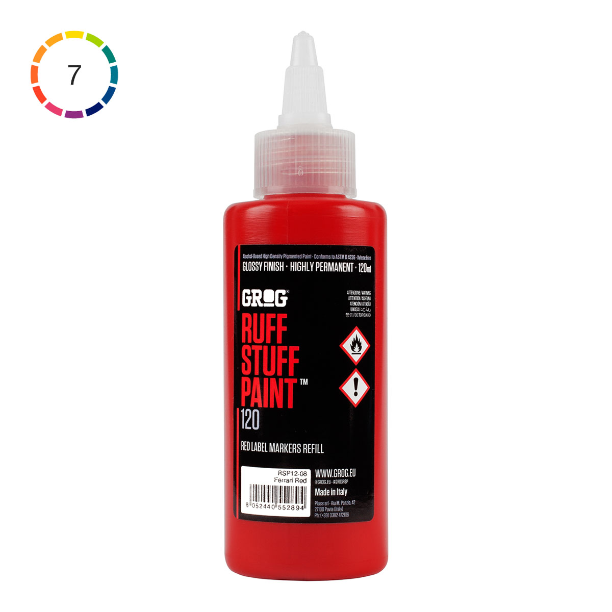 Thick alcohol-based extra glossy paint optimised for Grogs Metal Head markers. The formula has a perfect balance between thickness and flow. Works on most surfaces even dirty rust and wet ones. Comes in a 120 ml bottle made of soft plastic with a refiller spout on top. Available in 7 different colors.