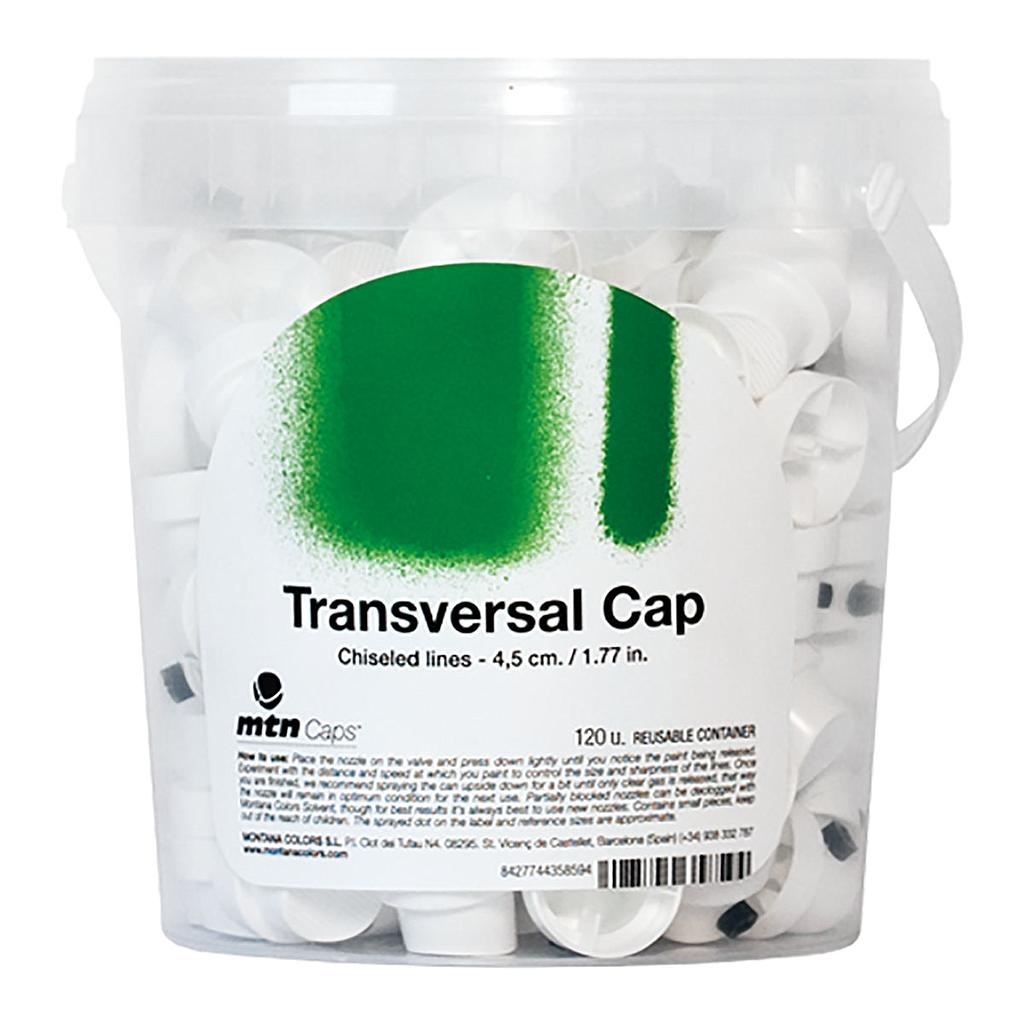 Big pack with 120 MTN White Transversal Caps, delivered in a practical plastic bucket. The MTN Hardcore Caps gives about 1,2 – 4,5 cm wide lines. See our entire range of spray caps here.